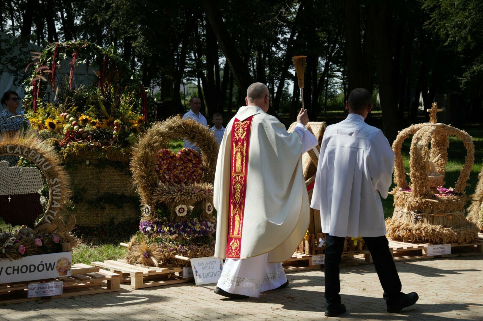 Dnia 25 sierpnia br. na terenie parku w Nerze odbyła się polowa Msza Święta celebrowana przez ks. Janusza Szeremetę-Proboszcza Parafii Wartkowice, ks. Roberta Nawrockiego-Proboszcza Parafii Dzierżawy oraz ks. Rafała Dąbrowskiego-Proboszcza Parafii Leźnica Wielka. Podczas mszy podziękowano za tegoroczne plony oraz pobłogosławiono dary i wieńce wyplecione z tegorocznych zbóż. Honory tegorocznych Starostów gminnych pełnili: Pani Urszula Bamberska z Konopnicy i Pan Leszek Rulka z Sędowa. Natomiast Starostami parafialnymi byli Państwo Sabina i Mirosław Balcerzak z sołectwa Spędoszyn-Kolonia.
